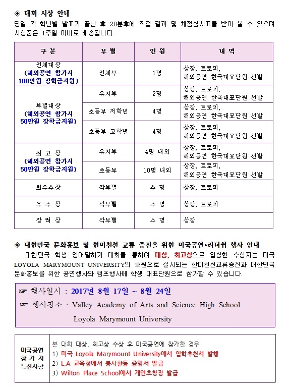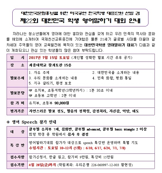 대한민국학생 영어말하기 대회 신청 안내